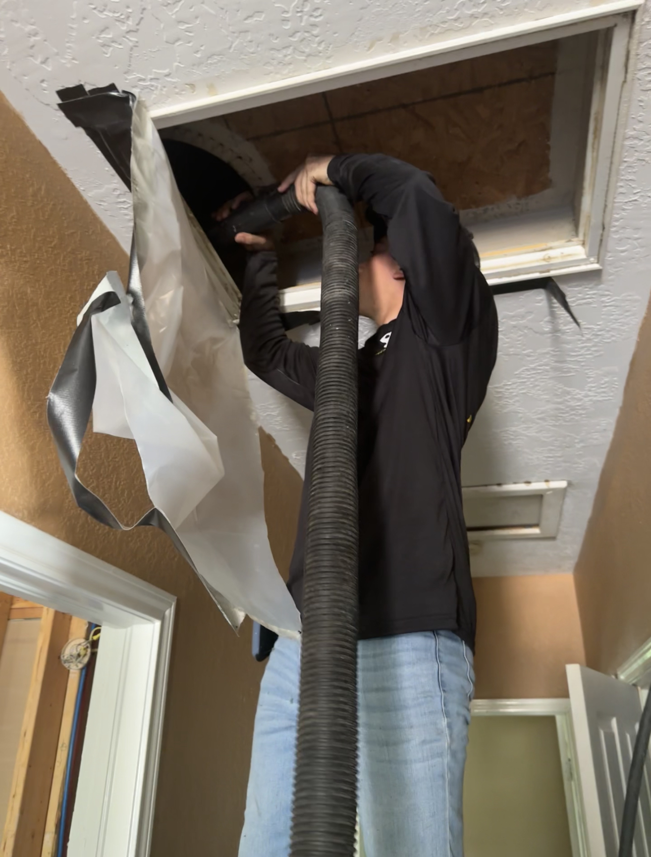 The technician will connect a negative pressure machine (HEPA-filter vacuum) to clean your system -We Use Negative Pressure Machine